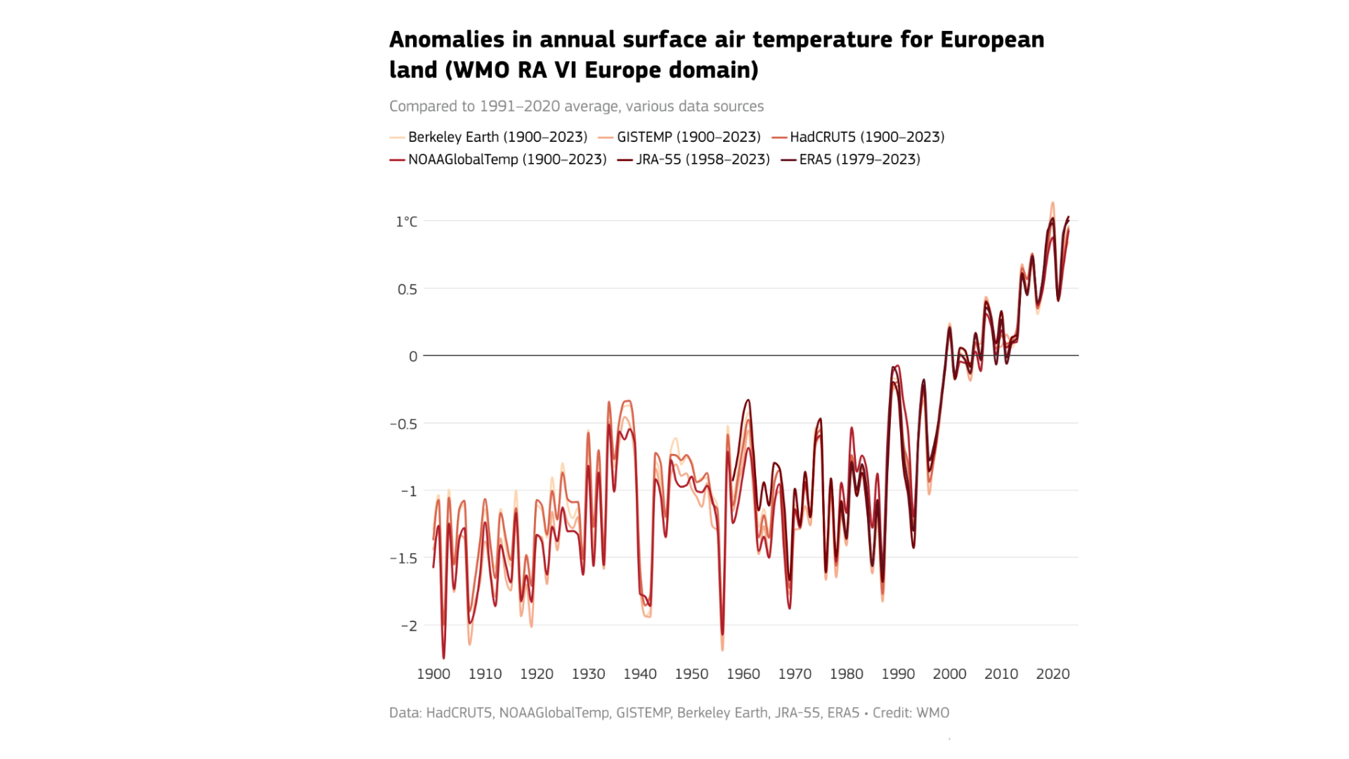 Anomalies in the annual surface air temperature for European land. Credit: Copernicus