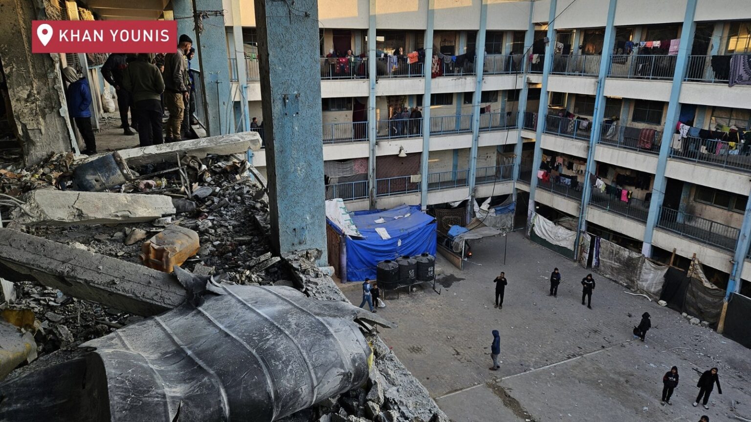 Impact of Israeli airstrike on an UNRWA school in Khan Younis. Photo via UNRWA