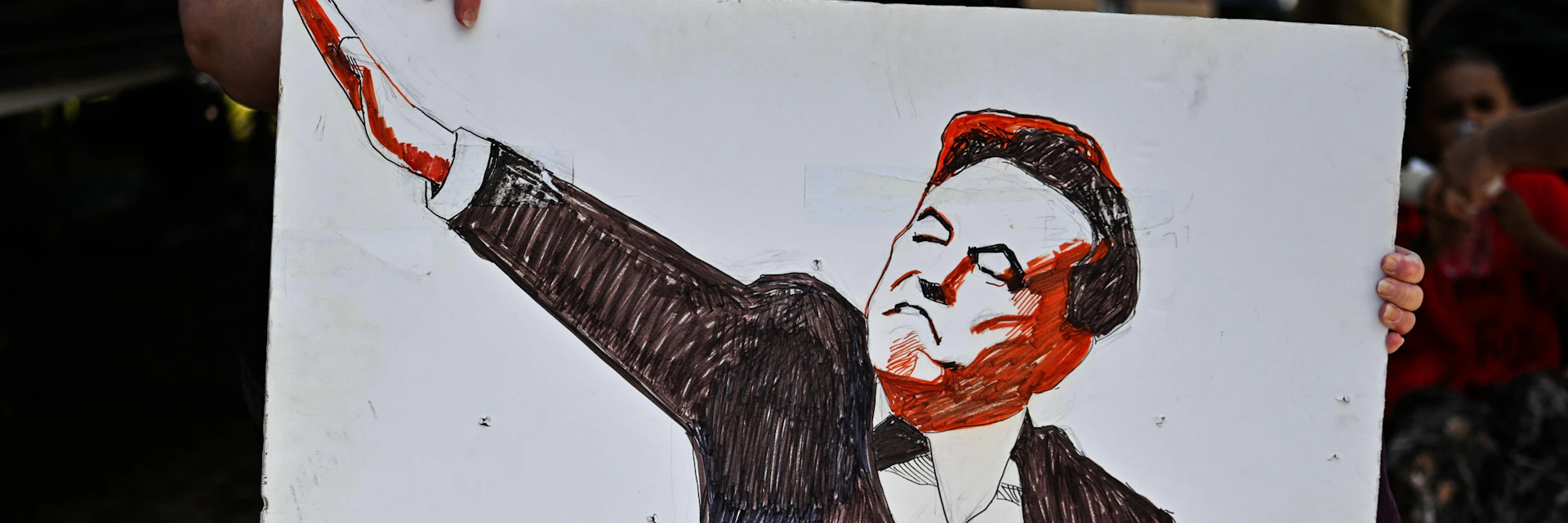 A protester holds up a sign making fun of Elon Musk. Alamy/John Lazenby