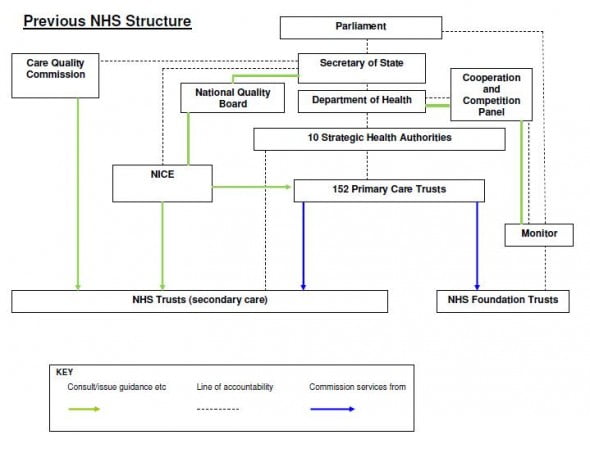 Other new bodies to be created include clinical senates, Public Health England, Healthwatch England, Health Education England, citizens’ panels, local education and training boards, and health and wellbeing boards. Primary care trusts (PCTs) will be replaced by accredited and shadow clinical commissioning groups (CCGs). Labour said confusion remained about the transfer of responsibility from PCTs to CCGs, with senior officials at the Department of Health reportedly raising concerns about the danger of operating a two-tier commissioning system.