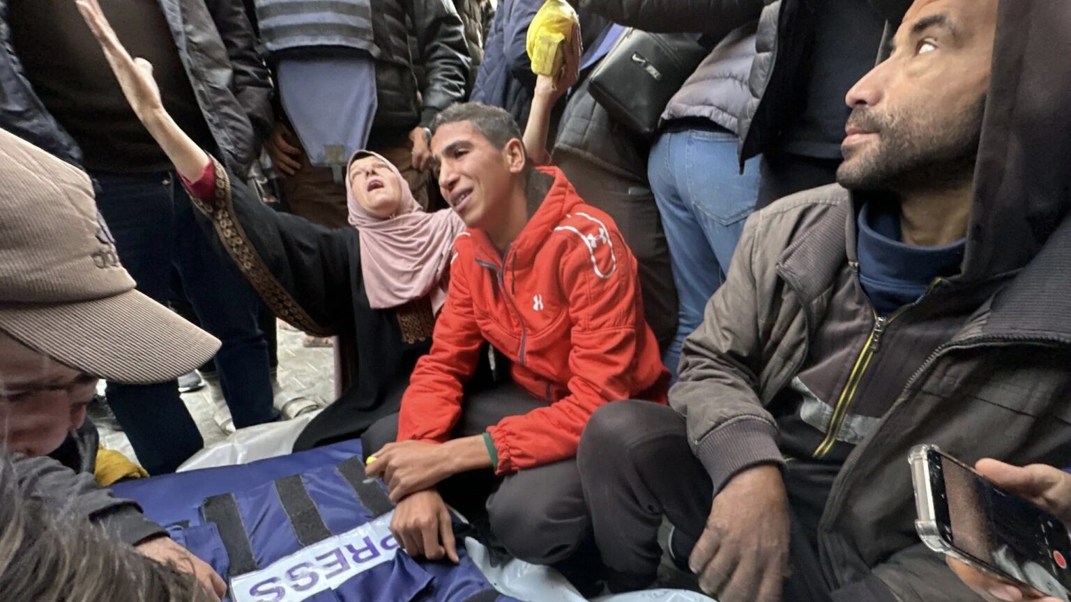 5 journalists were killed in an Israeli air strike on their vehicle near Al-Awda Hospital in Nuseirat, central Gaza Strip, on December 26, 2024. Photo: Mohammed Asad/Middle East Monitor.