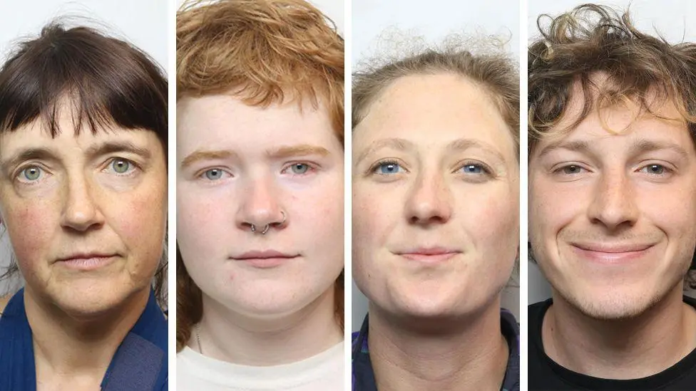 Officers arrested Indigo Rumbelow, Margaret Reid, Leanorah Ward and Daniel Knorr as they were making their way to the airport on 4 August 2024.